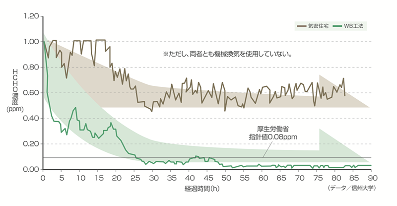 機械換気を使用していない状態で、これほどの結果を出せるのはWB工法以外にありません。